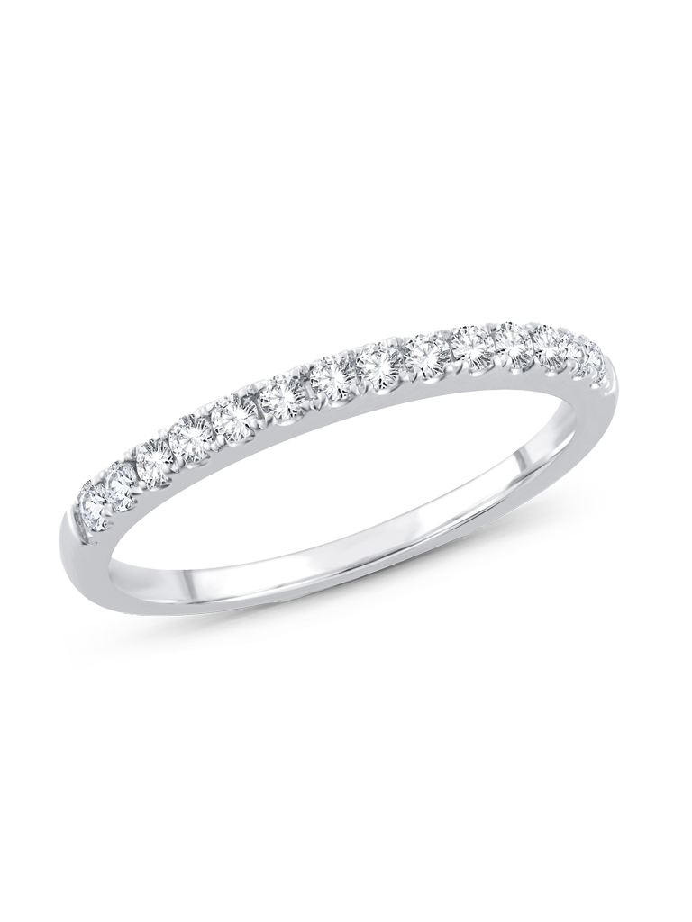 A timeless design, set with 1/4CT. of sparkling diamonds, this wedding band is the perfect oomph that she needs to enhance her engagement ring or simply, wear on its own. As they say, you can never go wrong with a classic.