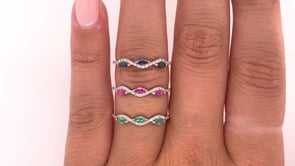 Three beautiful natural marquise-shaped sapphires are set into a band decorated with a delicate row of sparkling diamonds. This ring makes the perfect gift for any occasion!